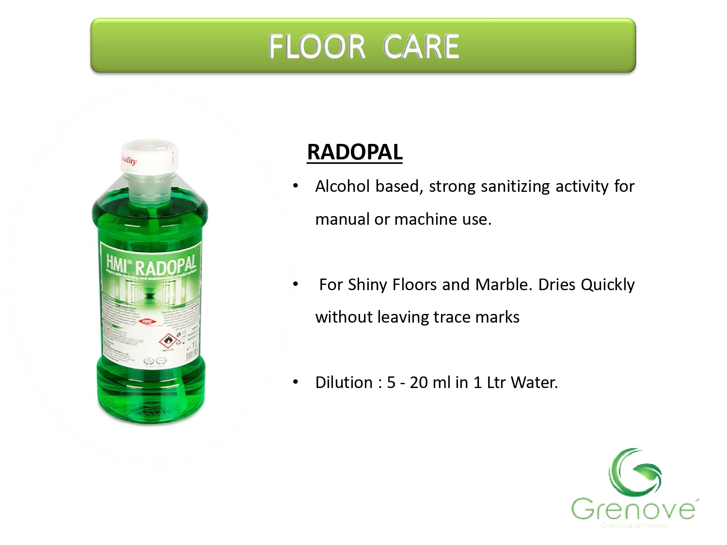 Grenove services is a leading supplier of sustainable, biodegradable industrial-grade cleaning chemical solutions and revolutionary cleaning equipments in India. We analyse and provide economically and ecologically beneficial products for professional spaces and train hygiene maintenance personnel to rightly use super-concentrate chemicals and mechanical equipment.